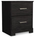With its clean-lined look and modern attitude, this nightstand is a fresh style awakening. A warm charcoal hue over replicated oak grain easily complements other furniture finishes. Smooth drawer fronts with antiqued pewter-tone handles complete the aesthetic.
