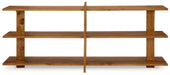 Leaning toward a clean, casually cool look? This solid wood console table is just your style. Its warm honey brown finish exudes an overall relaxed sensibility that feels like home. Three spacious shelves display accents effortlessly.